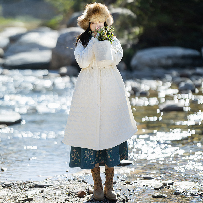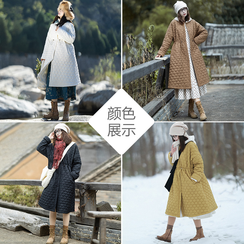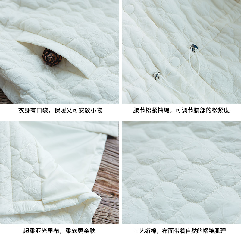 【经霜银杏】复古肌理感绗棉棉服女中长款2024年冬季多色收腰棉衣