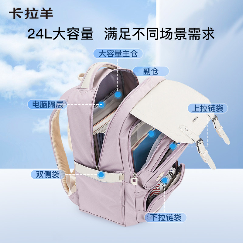 卡拉羊初中生书包减负轻便剑桥包高中生双肩包简约防水背包女生