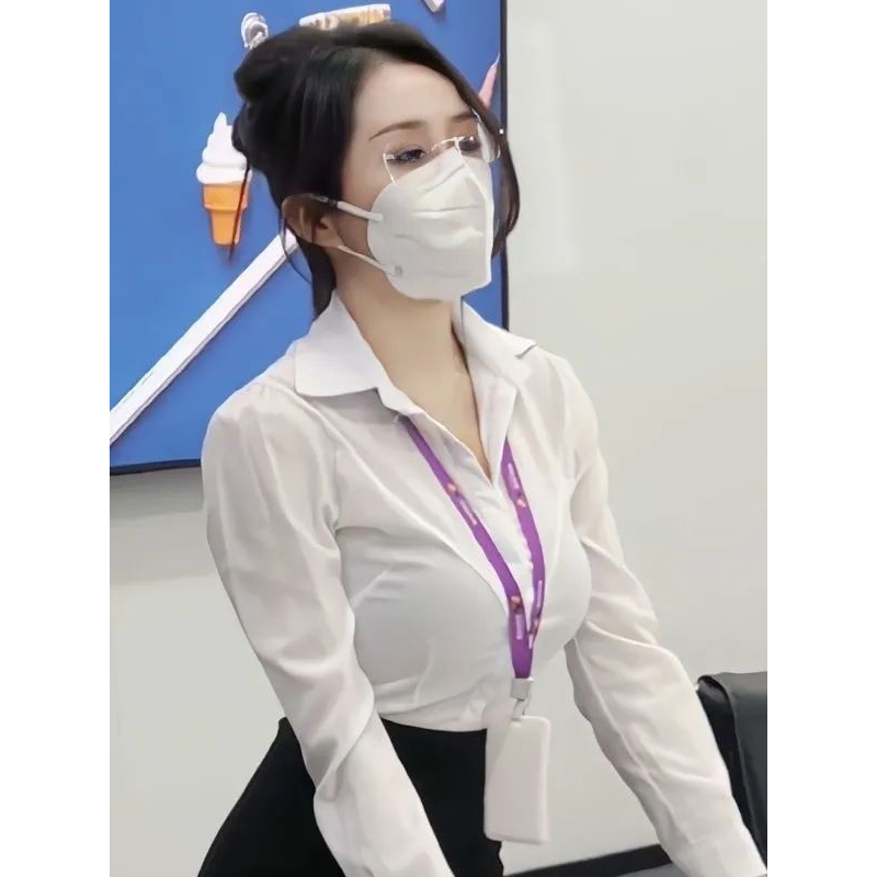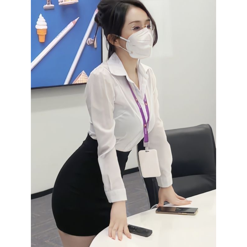 胖MM200斤特大码收腰长袖白衬衫职业工作服套装设计性感修身衬衣