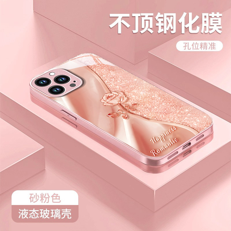 适用苹果16Promax手机壳新款iPhone15奢华14Plus紫色玫瑰13玻璃12mini保护套11全包xs防摔7壳8带6s挂绳se3