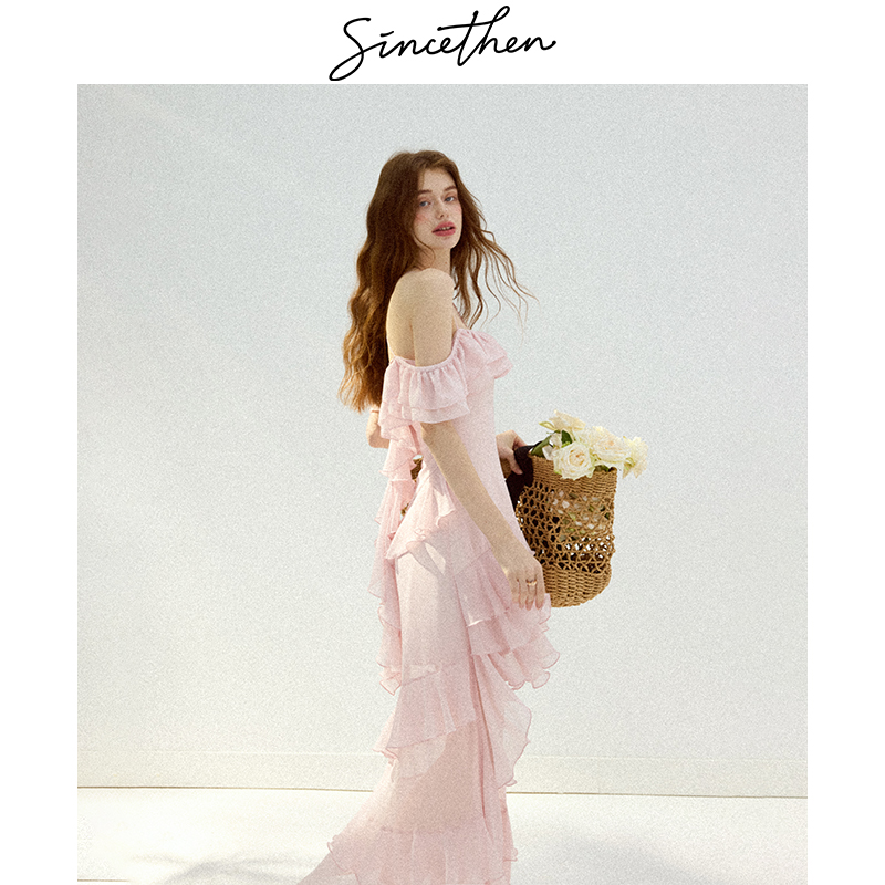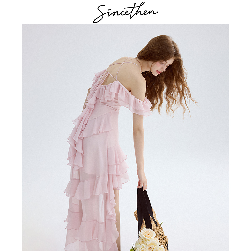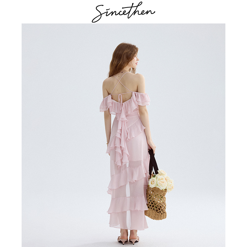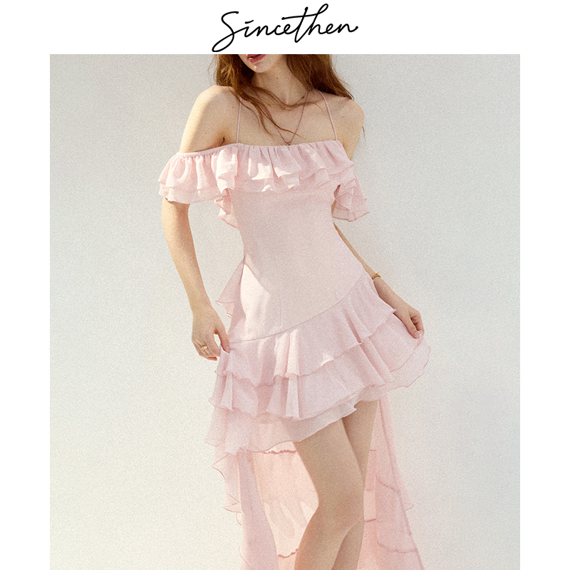 sincethen粉色连衣裙高级感吊带裙设计感裙子短裙度假穿搭女夏季