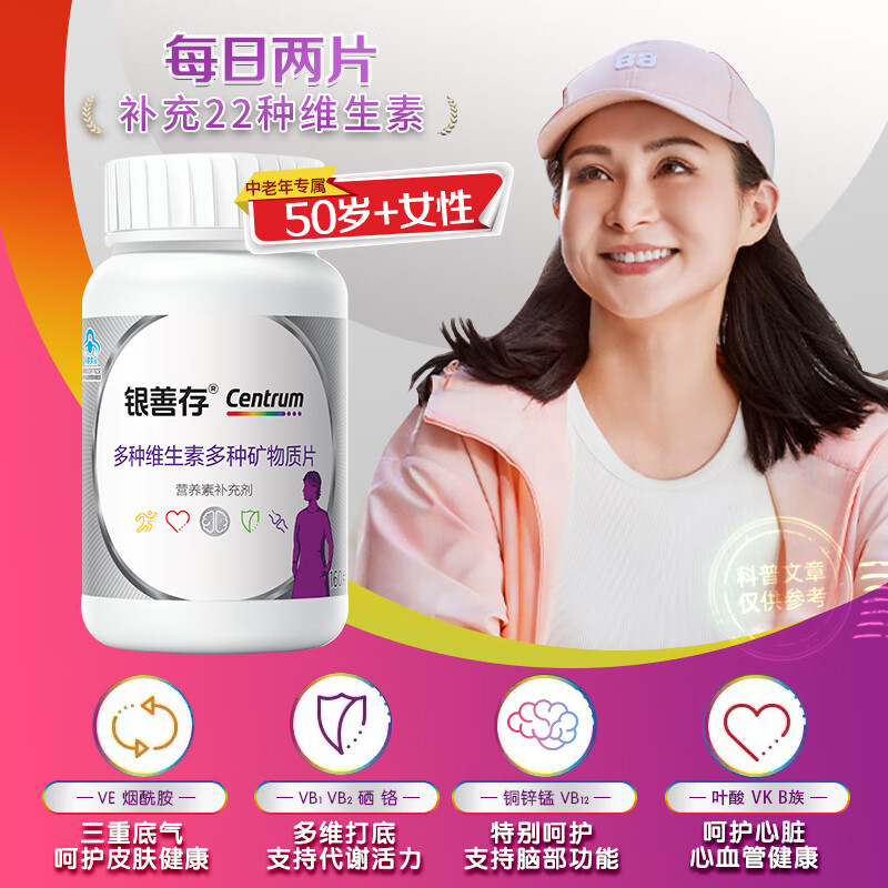 善存银善存中老年女士复合维生素22种营养元素160片富含钙铁锌维c