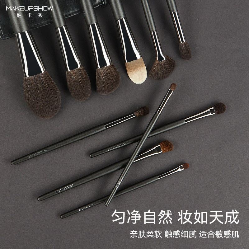 魅卡秀15支化妆刷套装粉底刷腮红眼影刷动物毛化妆师专用全套刷子