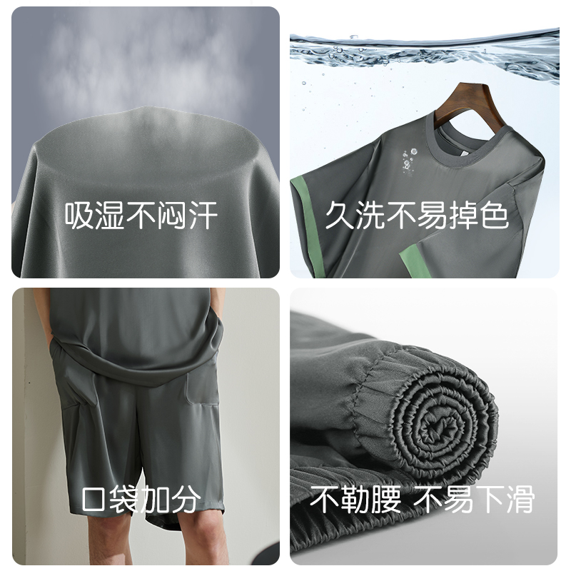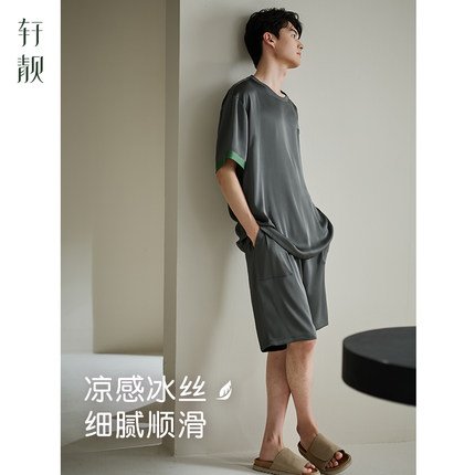 轩靓睡衣男夏季薄款冰丝绸短袖简约高级感仿真丝可外穿家居服套装