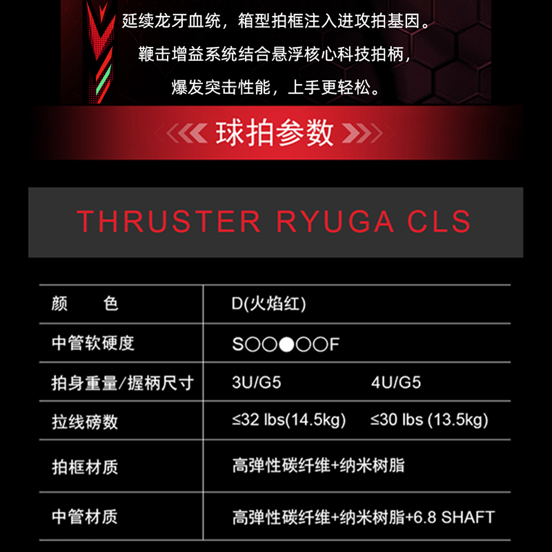 威克多胜利羽毛球拍 龙牙之刃TK-RYUGA CLS碳纤维爆发进攻单拍