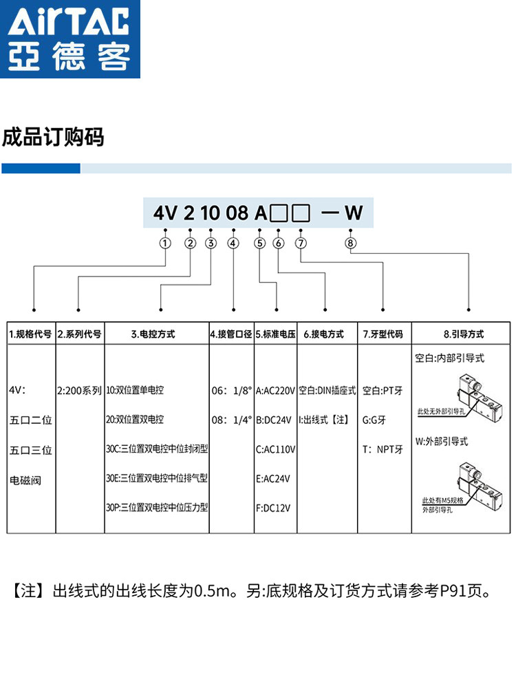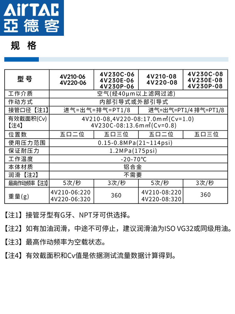 亚德客4v210-08 气缸控制阀防爆电磁阀常开气动阀220v线圈24v12v