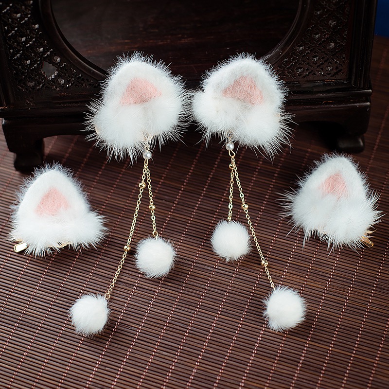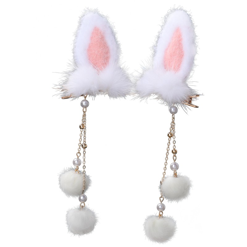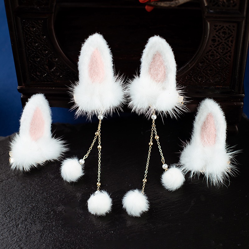 汉服发饰水貂毛球发夹兔耳朵复古流苏对夹甜美儿童古风耳朵头饰女