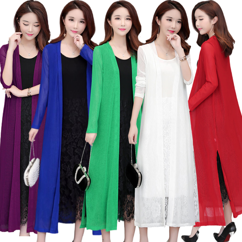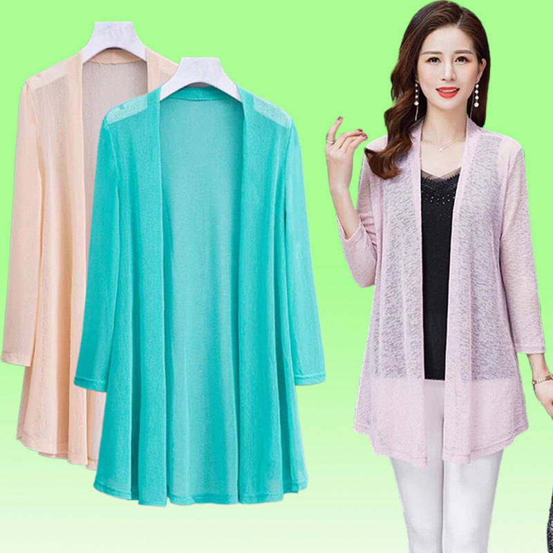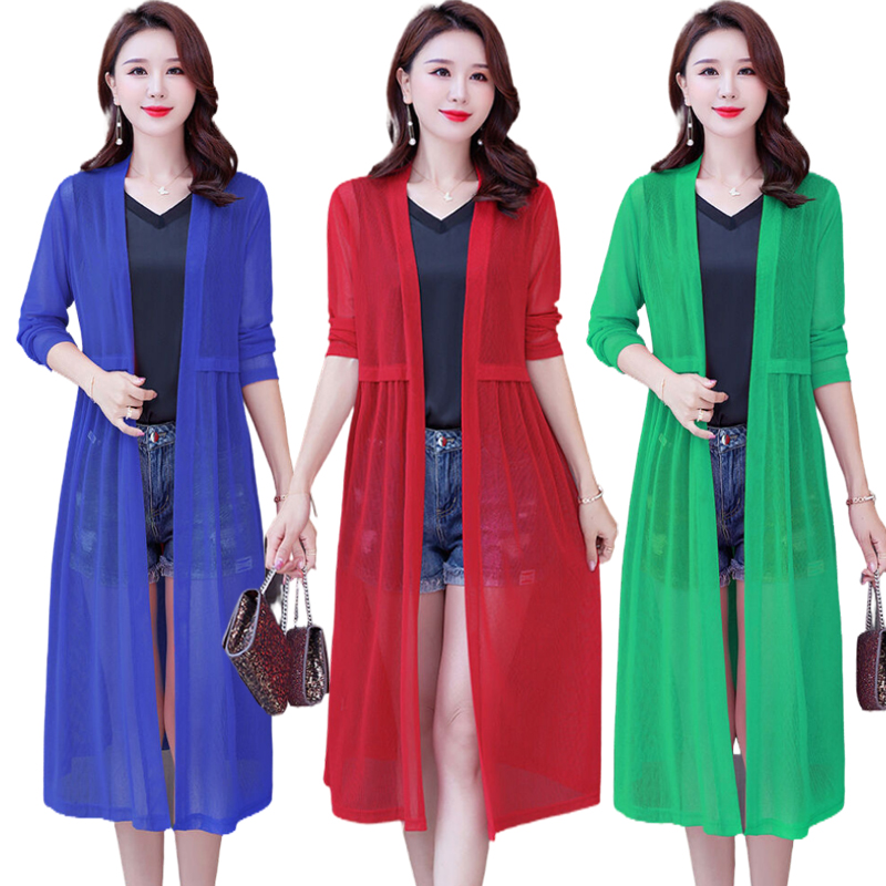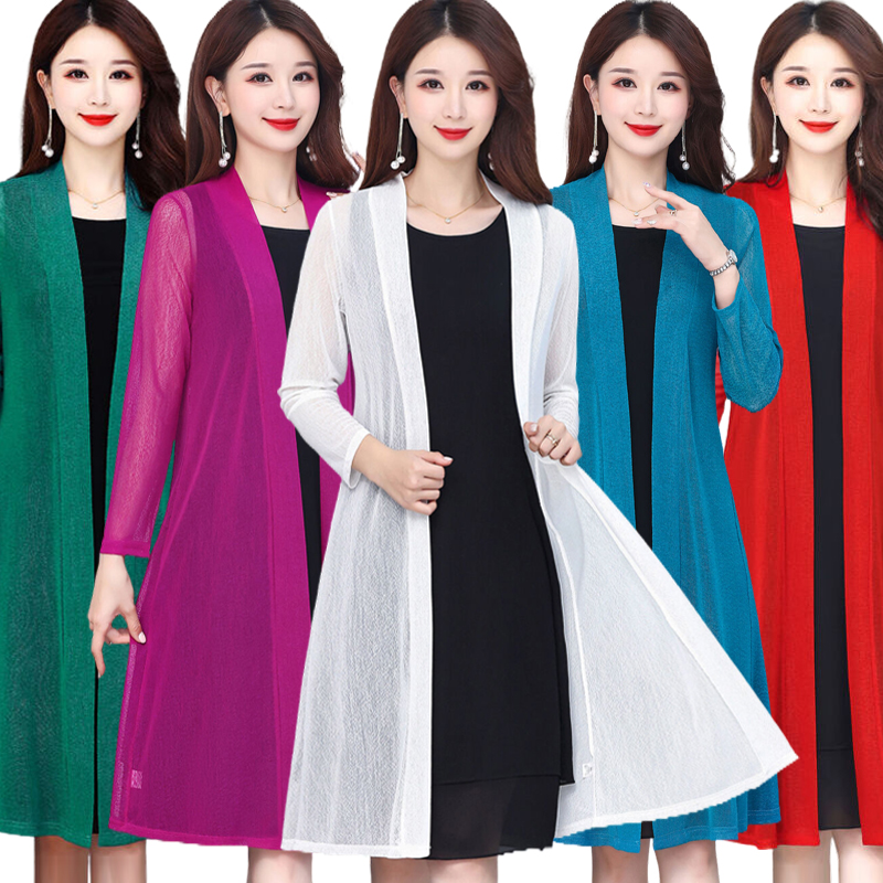 长袖开衫春夏中长款轻薄外套女纱衣冰丝外搭外披肩披风防晒衣外衣
