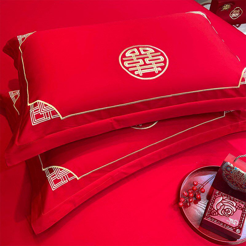 高档结婚四件套j大红刺绣床单被套新婚房陪嫁婚庆床上用品喜被套