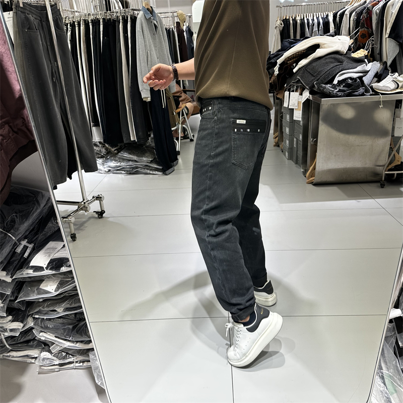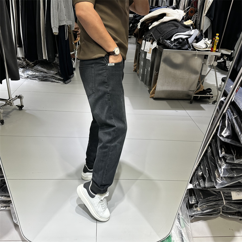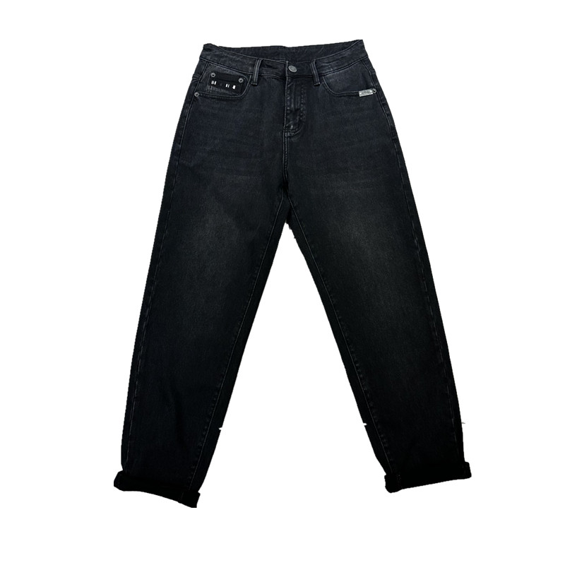 九奈川2025秋冬新款男士黑色牛仔裤修身弹力水洗刺绣磨毛小脚长裤