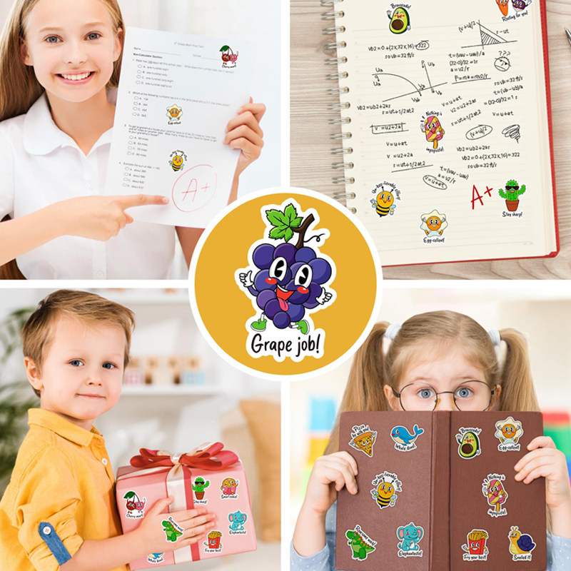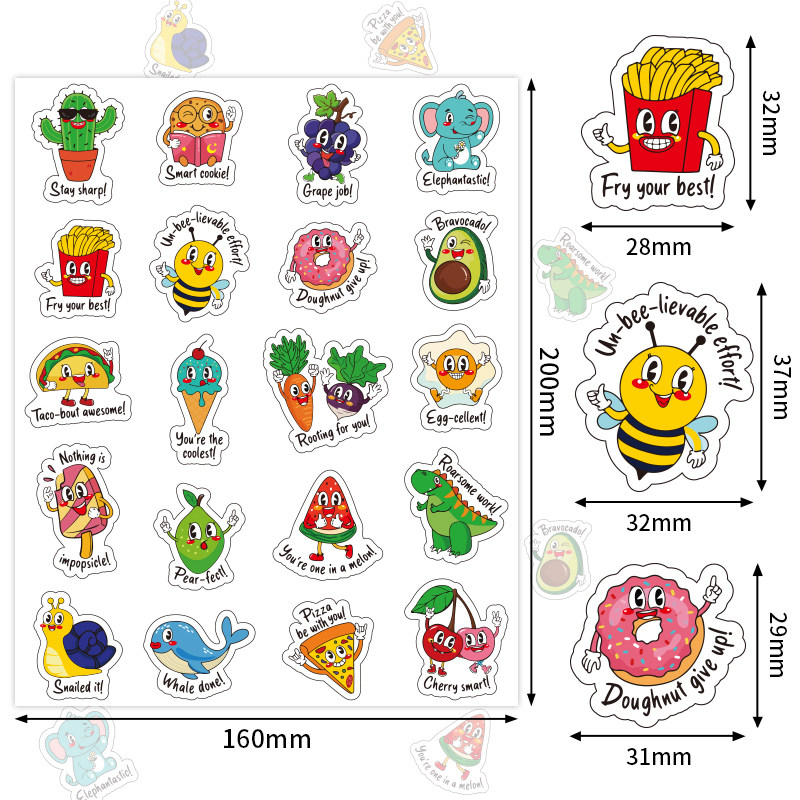 200贴/包可爱卡通励志贴纸趣味英文水果动物贴纸儿童表扬奖励贴画