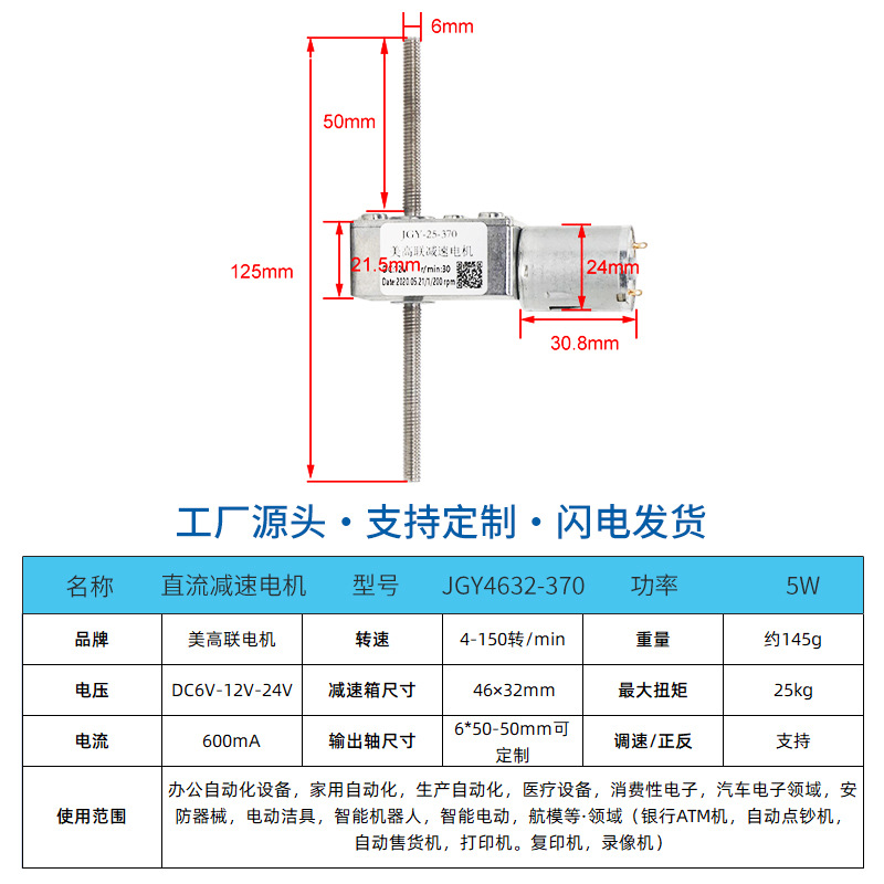4632-370直流减速电机6V12V24V低速双出长轴螺纹轴正反转微型