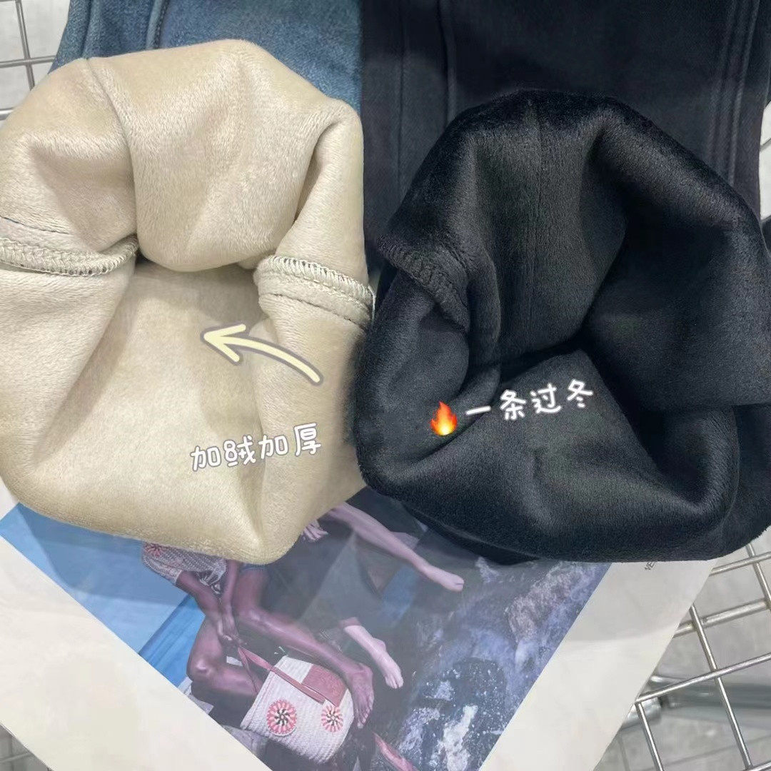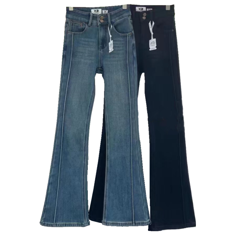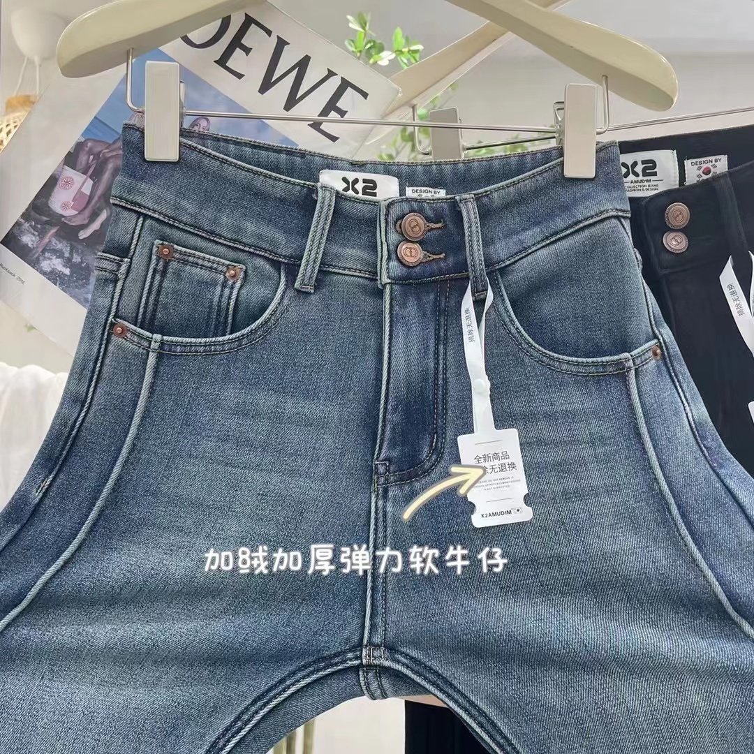 x2加绒加厚弹力微喇裤女2025冬季新款修身显瘦高腰百搭拖地牛仔裤