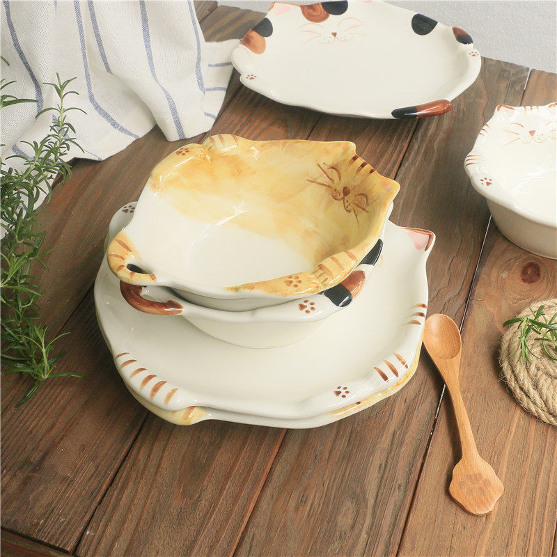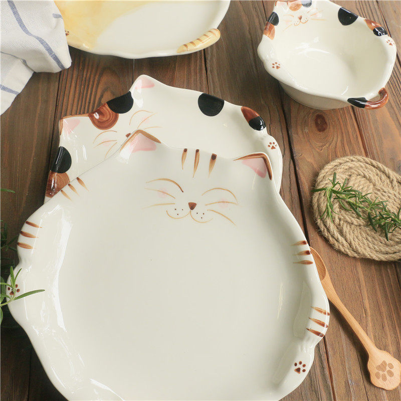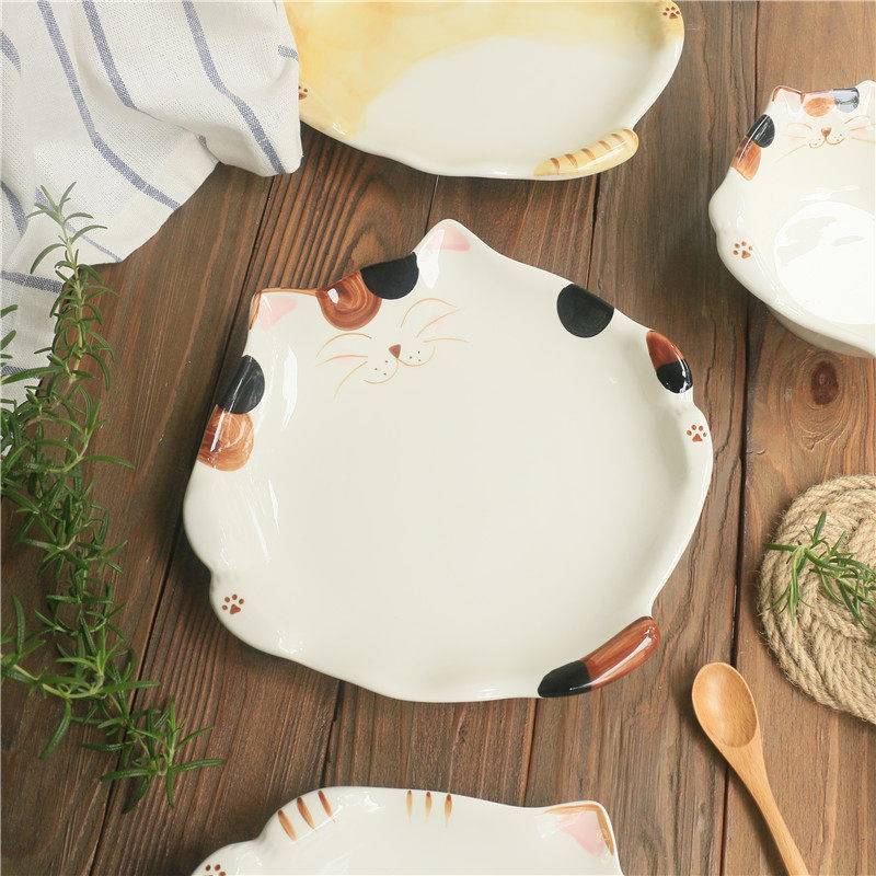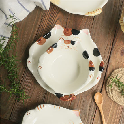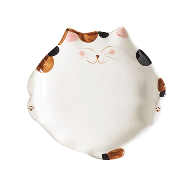 树下盒 釉下彩日式猫咪瓷器餐具彩绘笑眯眯三花猫盘子水果盘