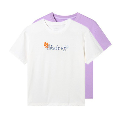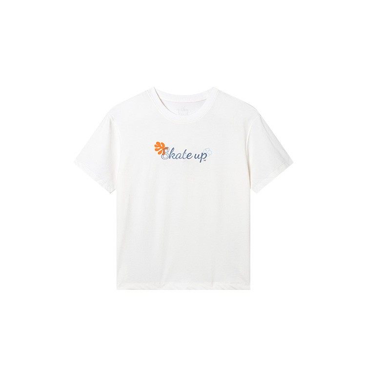 361度女士透气T恤新品2024夏轻薄舒适圆领短袖361女子印花运动衫
