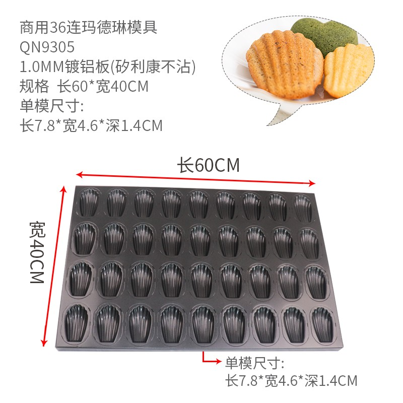 现货乾能36连玛德琳蛋糕模具不沾烤盘QN9305多连长贝壳模型商家用