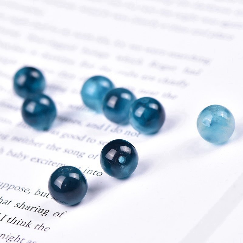天然冰蓝水翡翠飘花玉髓散珠圆珠DIY手链串珠手工项链挂件配件饰