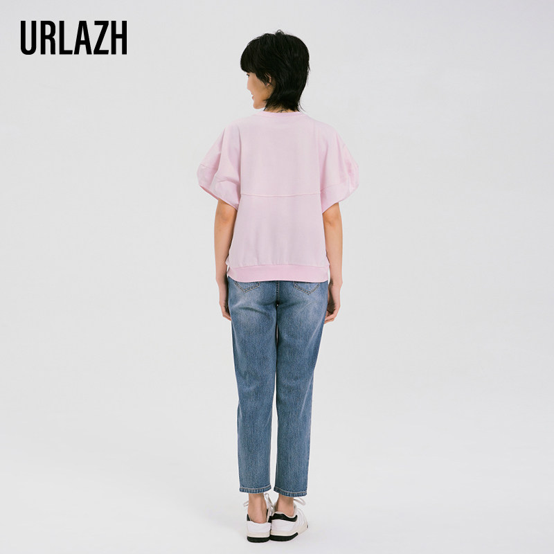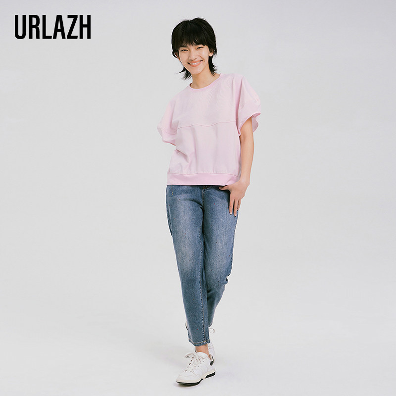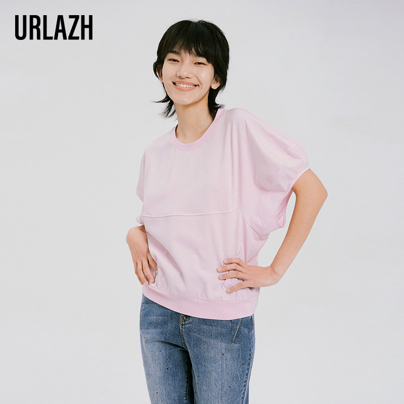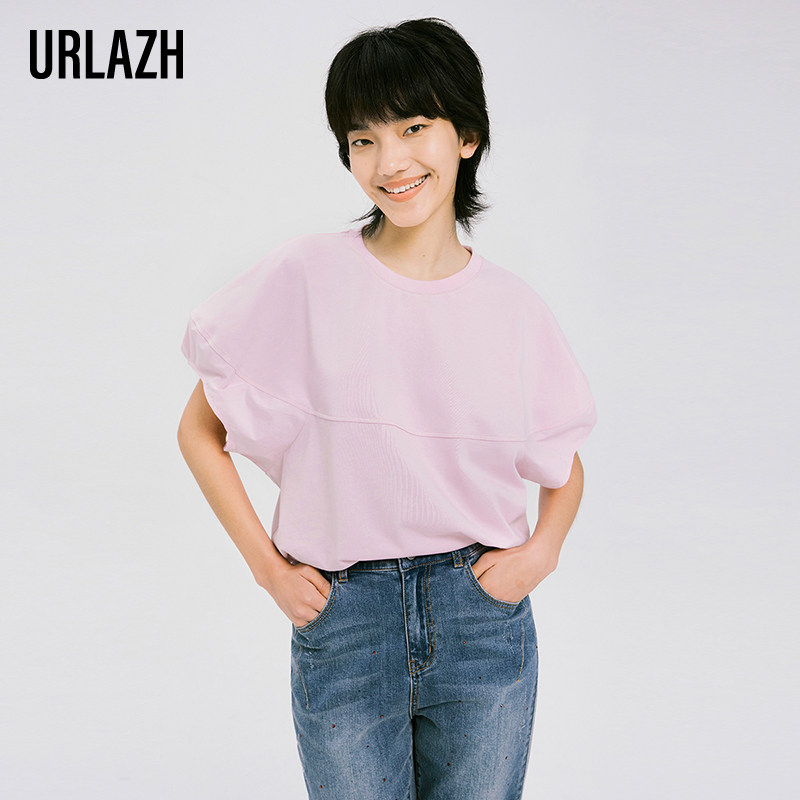 URLAZH有兰夏季新款洋气粉色减龄休闲宽松圆领纯色短袖T恤女