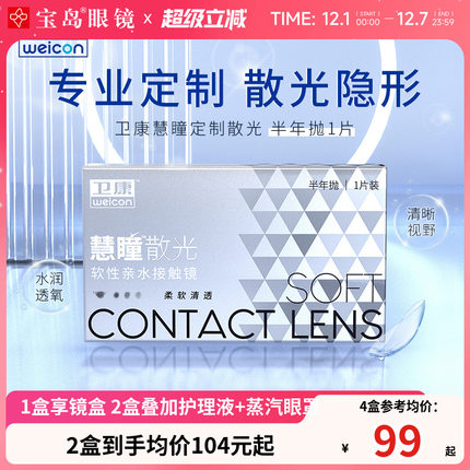 卫康慧瞳散光隐形眼镜定制半年抛1片盒加近视高低度数带散光宝岛