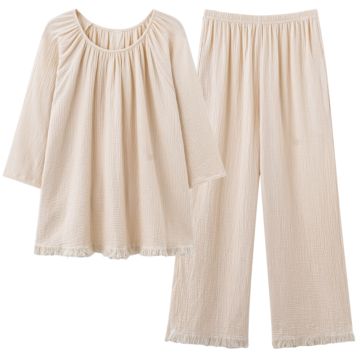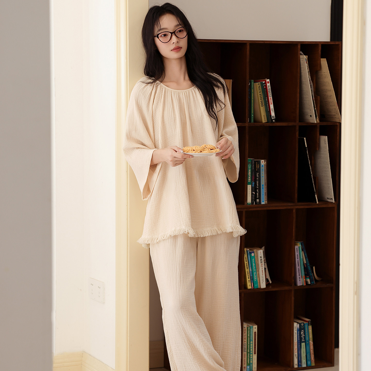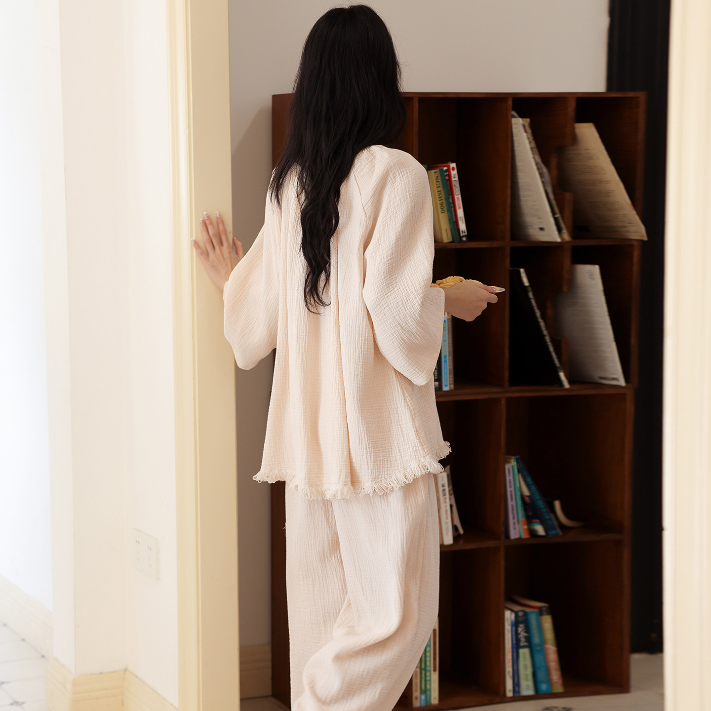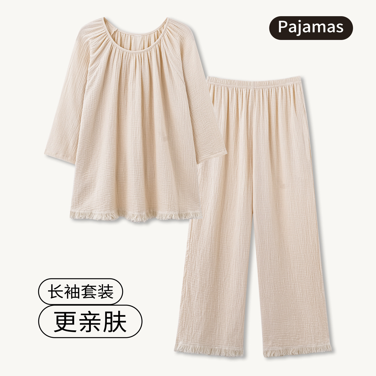 女士秋冬季新款睡衣韩系休闲ins纯棉纱布长袖长裤简约高级感套装