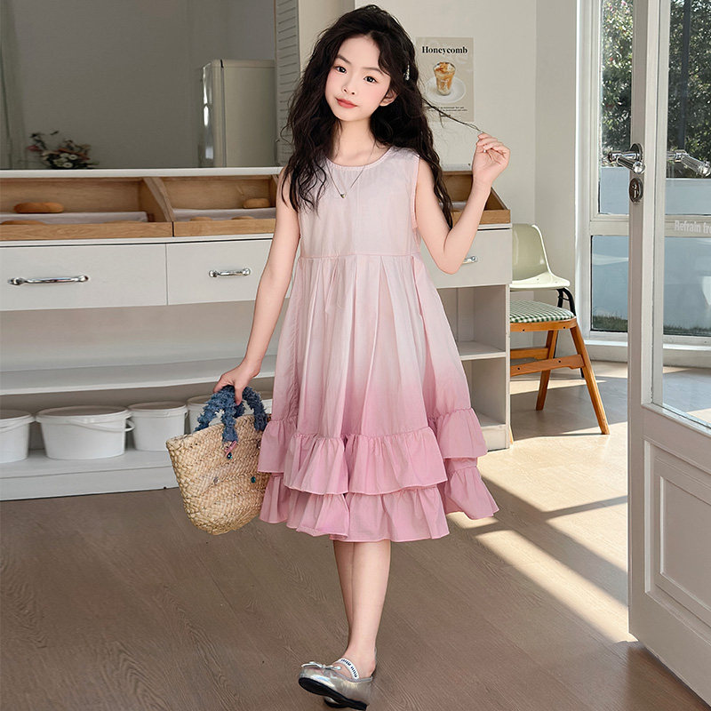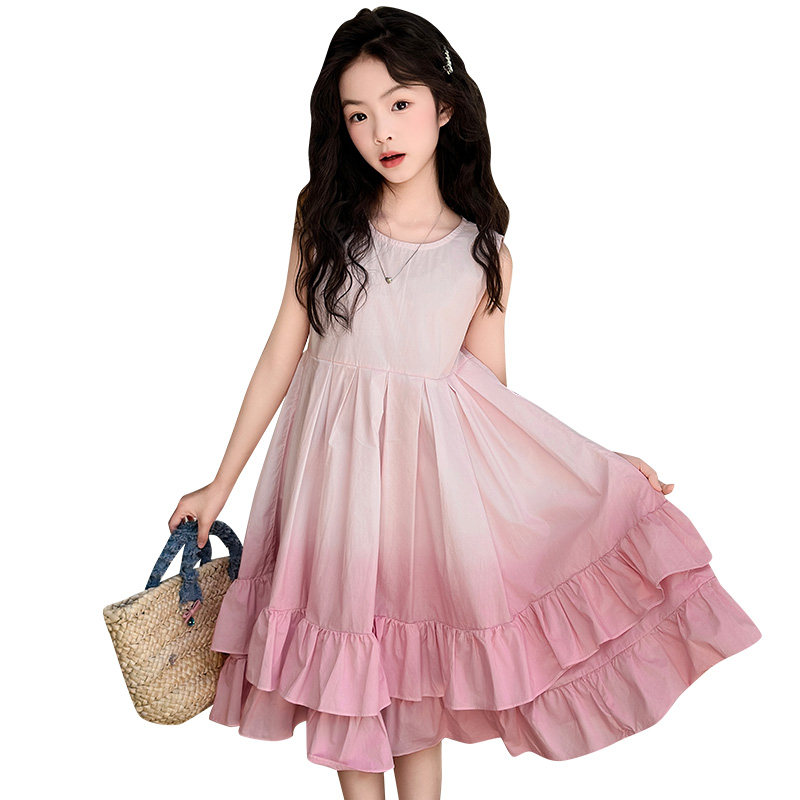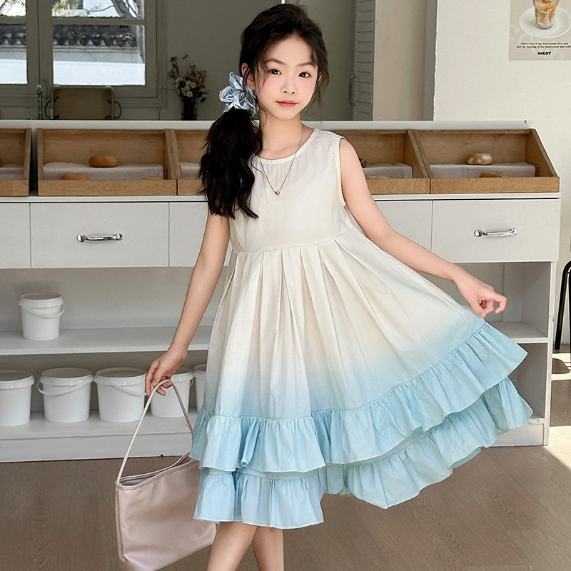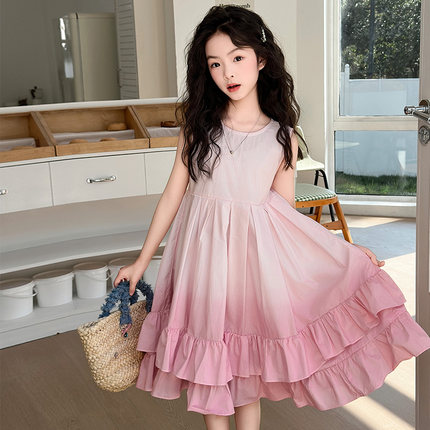 女童连衣裙夏季薄款2025新款儿童裙子女孩公主裙渐变色棉布背心裙