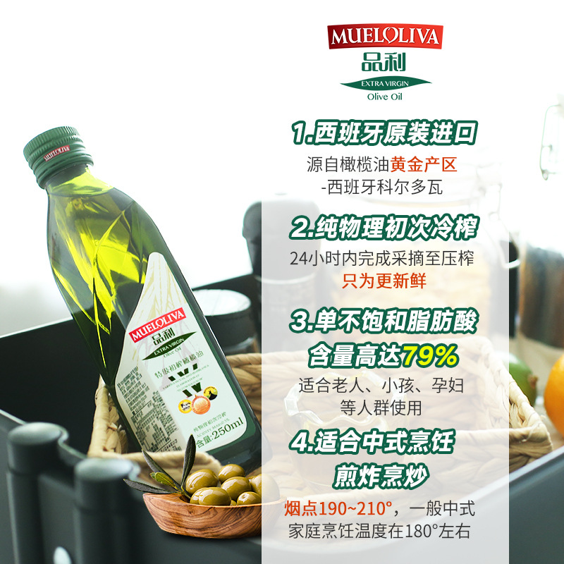 品利 初榨橄榄油250ml小瓶食用油拌意面沙拉家用