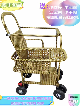 夏季宝宝仿藤推车婴儿竹藤推车轻便小孩儿童竹子小推车藤椅藤编车