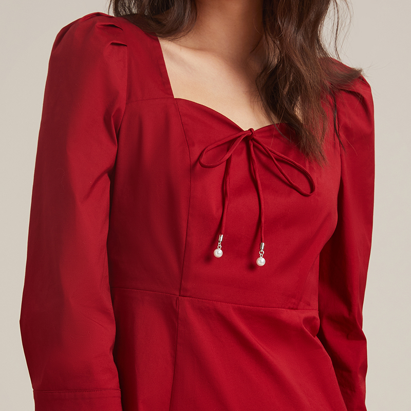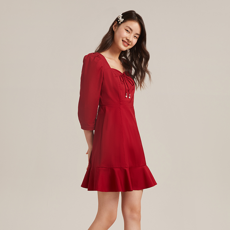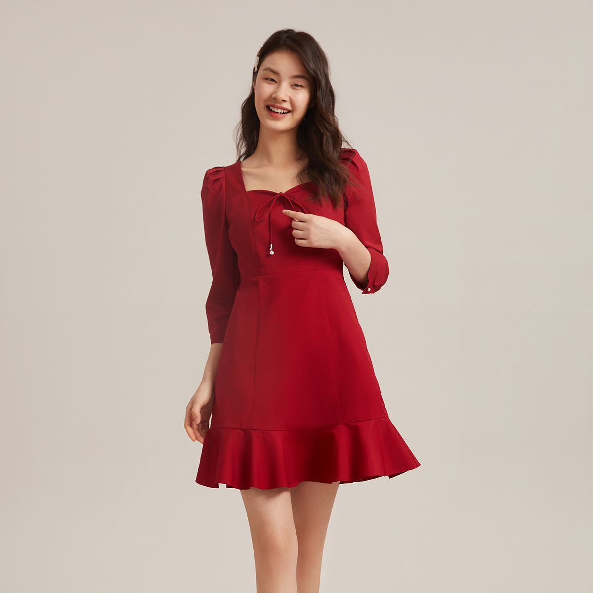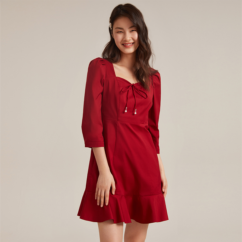 歌莉娅红色连衣裙女款法式气质方领鱼尾小个子礼服裙子112R4K1YF