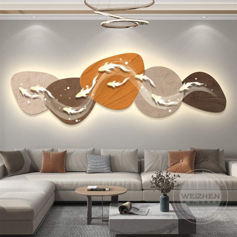 led带灯轻奢九鱼图客厅装饰画沙发背景墙挂画壁画简约现代高级感