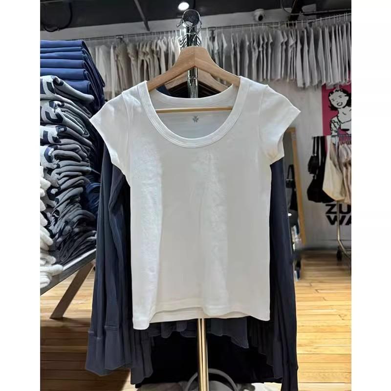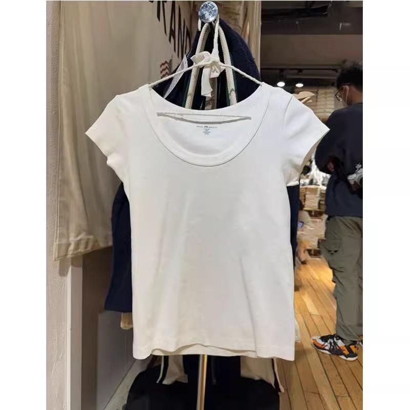 Brandy bm女装白色纯棉圆领T恤短袖正肩基础款纯色显瘦打底上衣