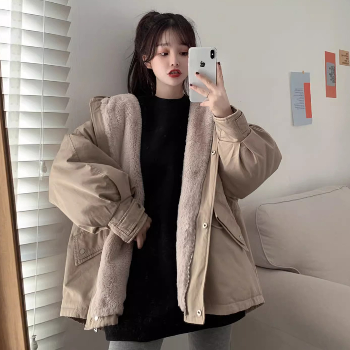 300斤特大码宽松设计感派克服女