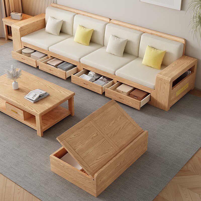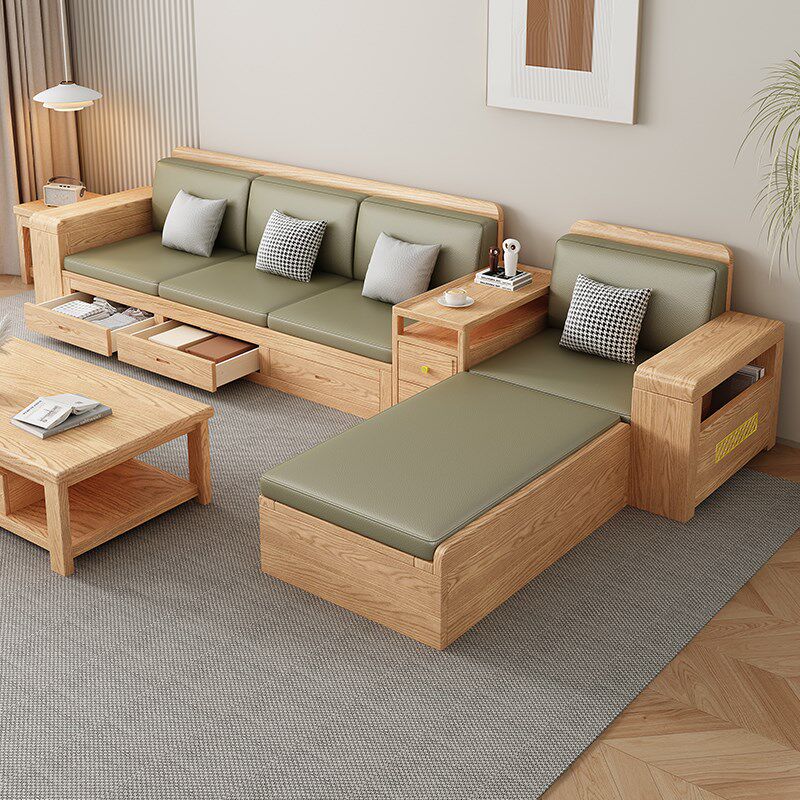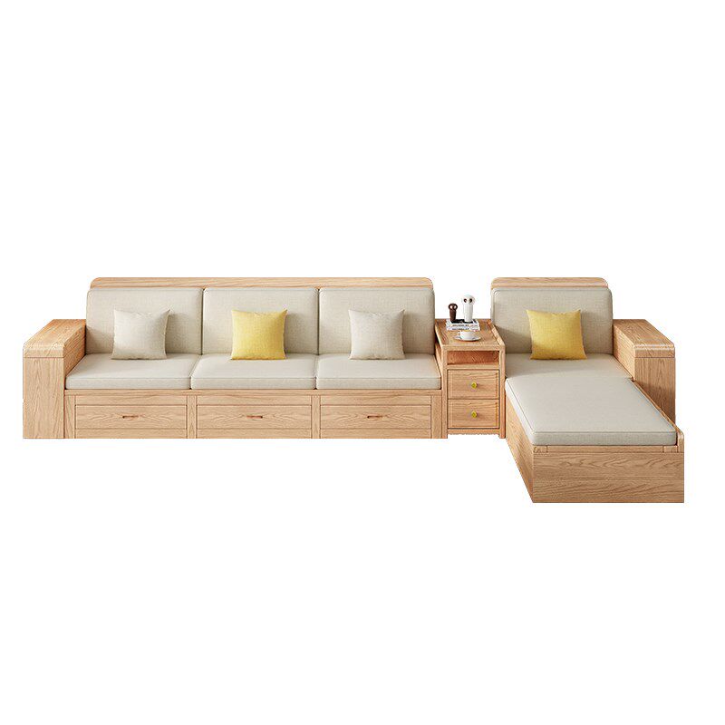白蜡木实木沙发组合现代简约家具冬夏两用家用转角贵妃储物沙发