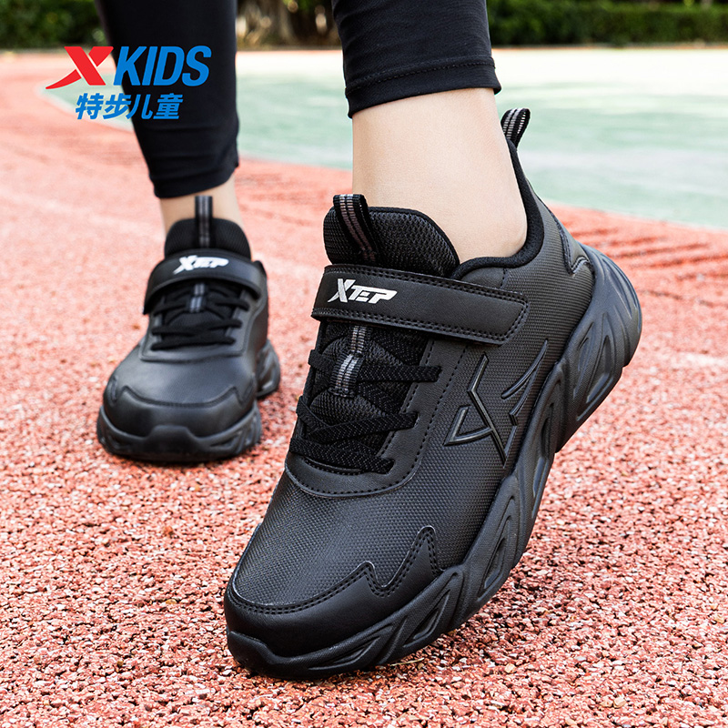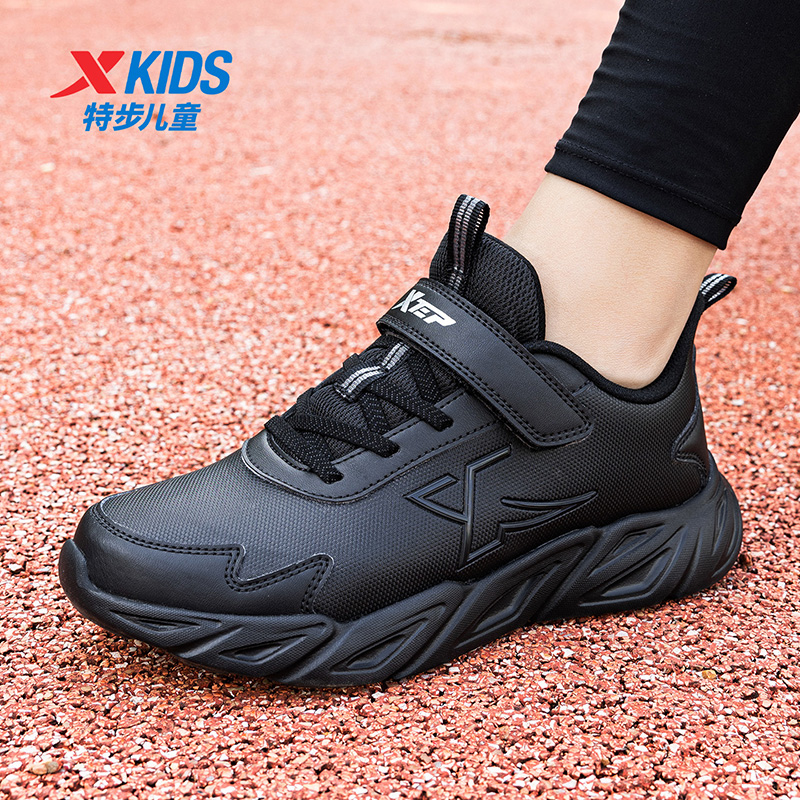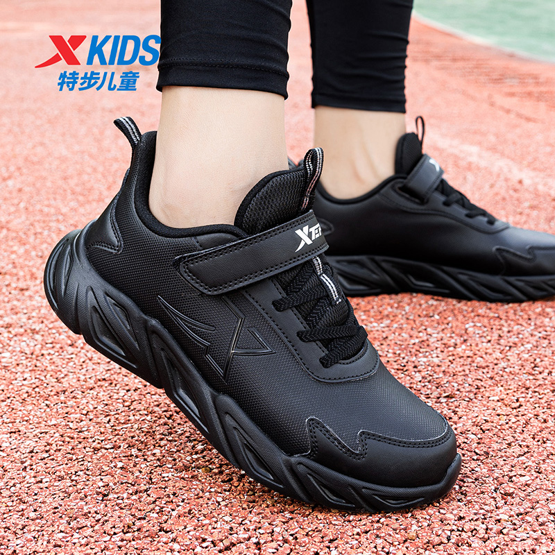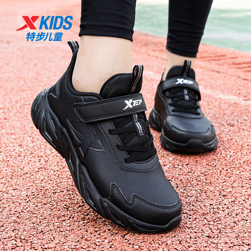 特步儿童童鞋大童跑步鞋革面透气软底秋季男童运动鞋轻便休闲鞋子