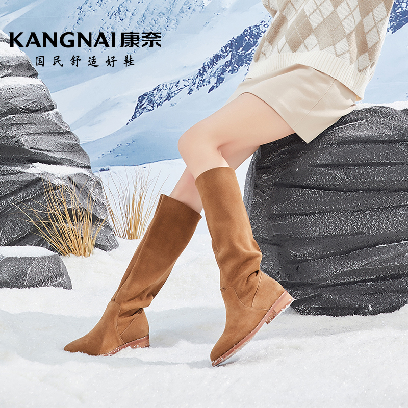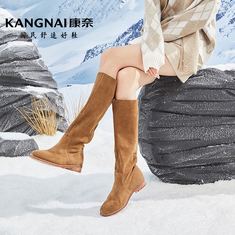 康奈堆堆靴粗腿显瘦骑士靴秋冬新款时尚复古粗跟高筒靴女靴子