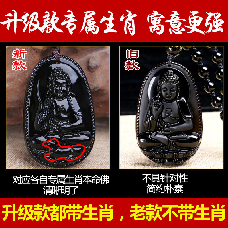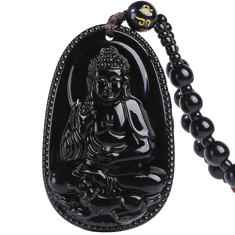 黑曜石本命佛吊坠项链虚空藏普贤观音菩萨十二生肖牛男女守护神