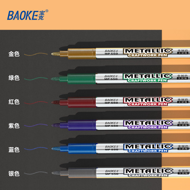 宝克金属工艺笔mp550金色银色油漆笔记号笔黑卡纸签名笔签字签到笔油性水笔diy相册写贺卡题名笔马克笔涂鸦笔