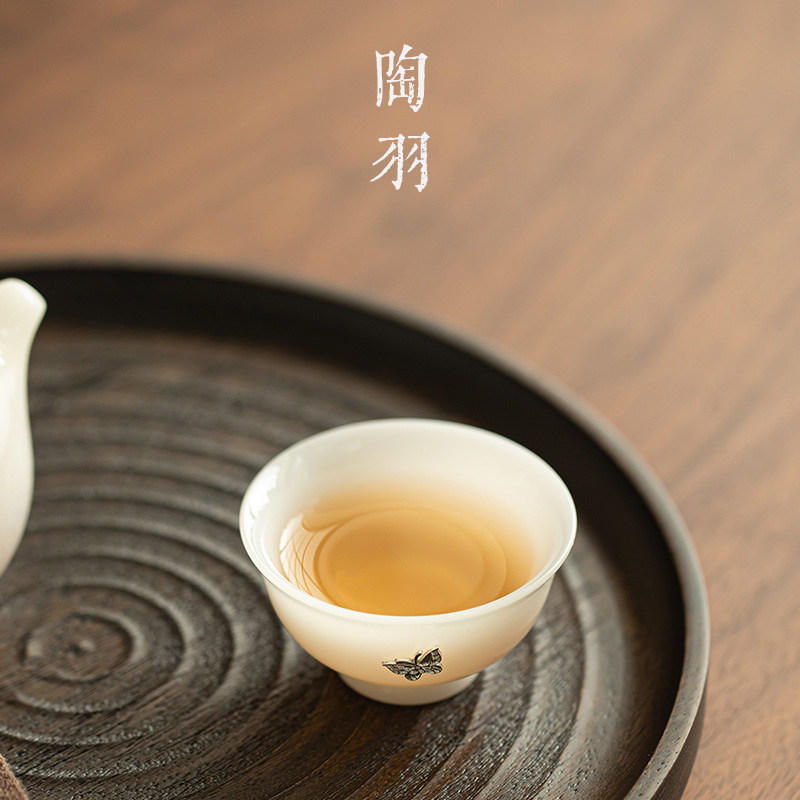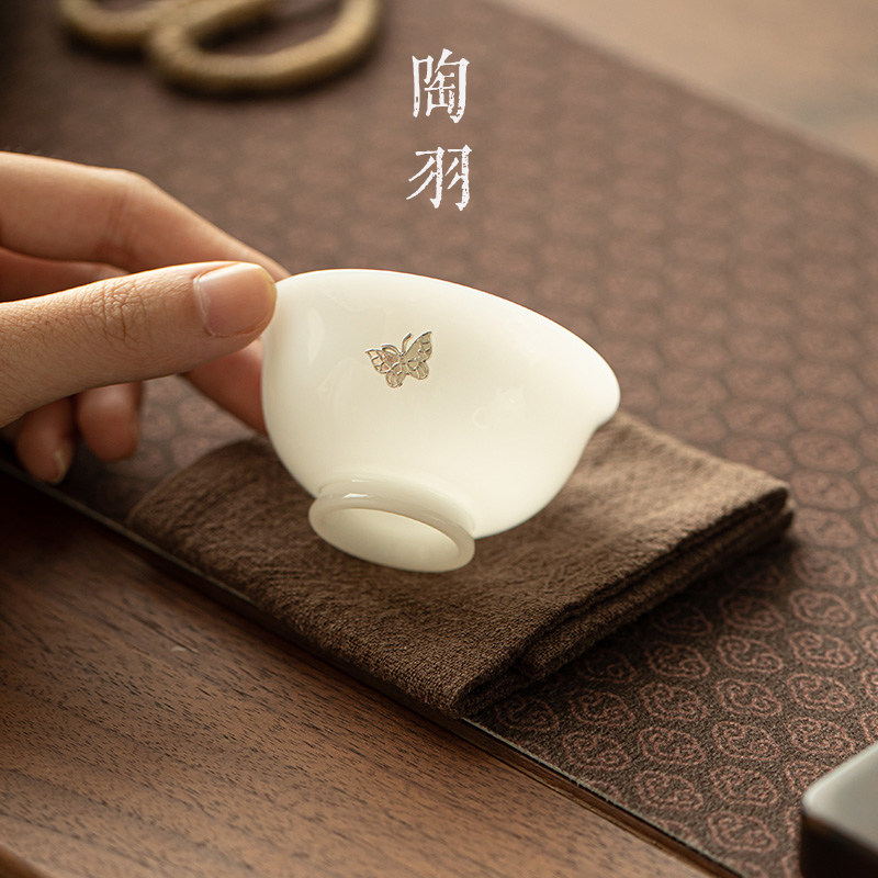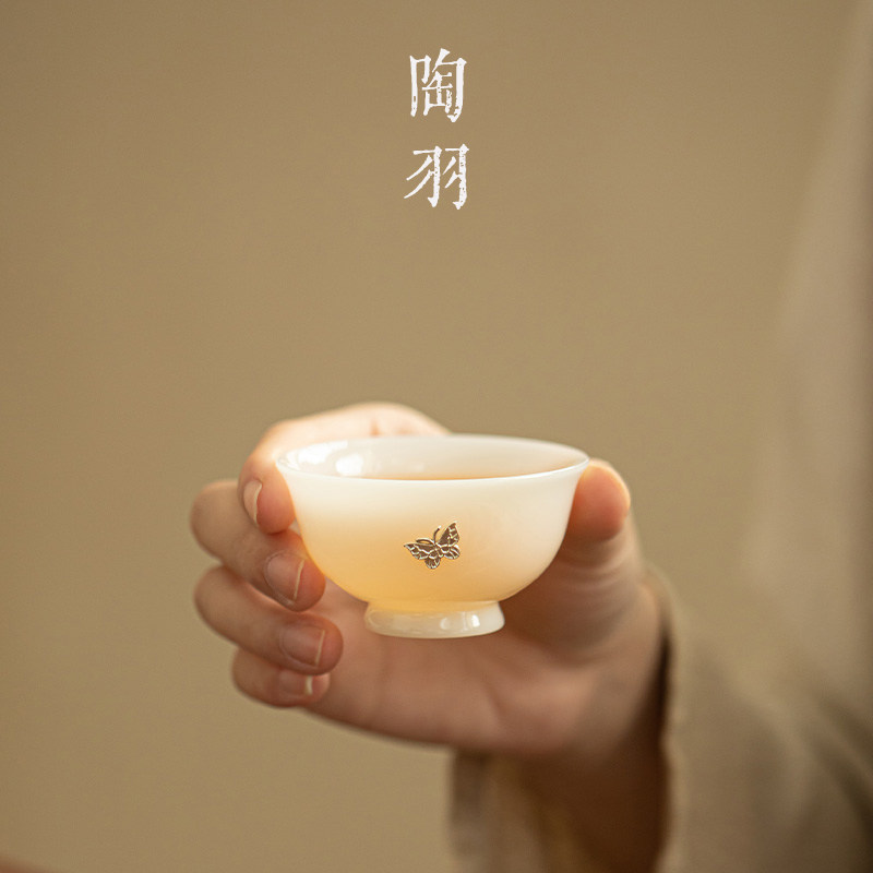冰种玉瓷锔银蝴蝶小圆杯陶瓷茶杯家用高档主人杯个人专用品茗杯