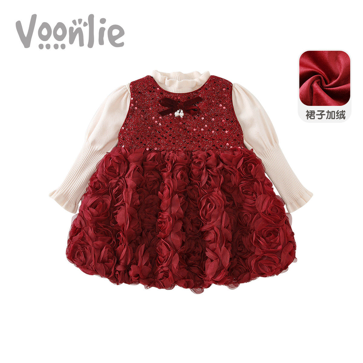 女童连衣裙秋冬儿童加绒公主裙一周岁宝宝礼服抓周拜年服冬季裙子