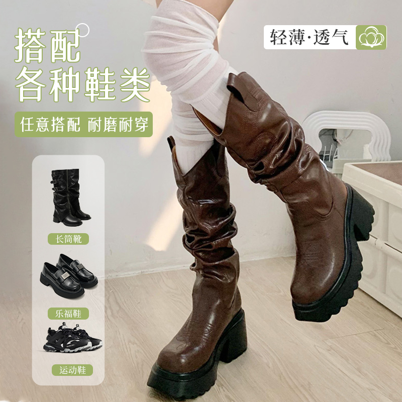 配靴子的袜子女士长筒过膝袜白色春秋款纯棉堆堆美拉德长靴jk长袜