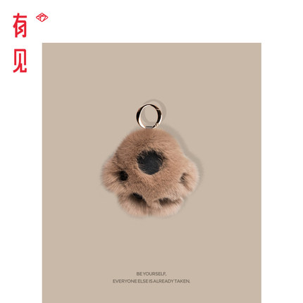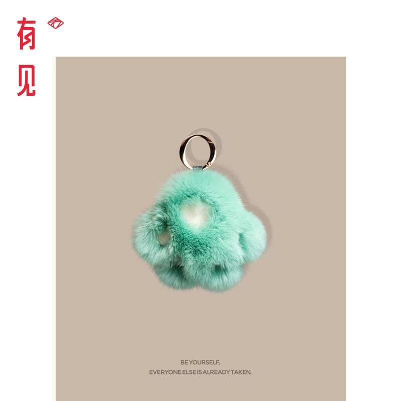 有见 獭兔毛熊掌车钥匙扣皮草毛球猫爪毛绒挂件可爱熊爪包包挂饰