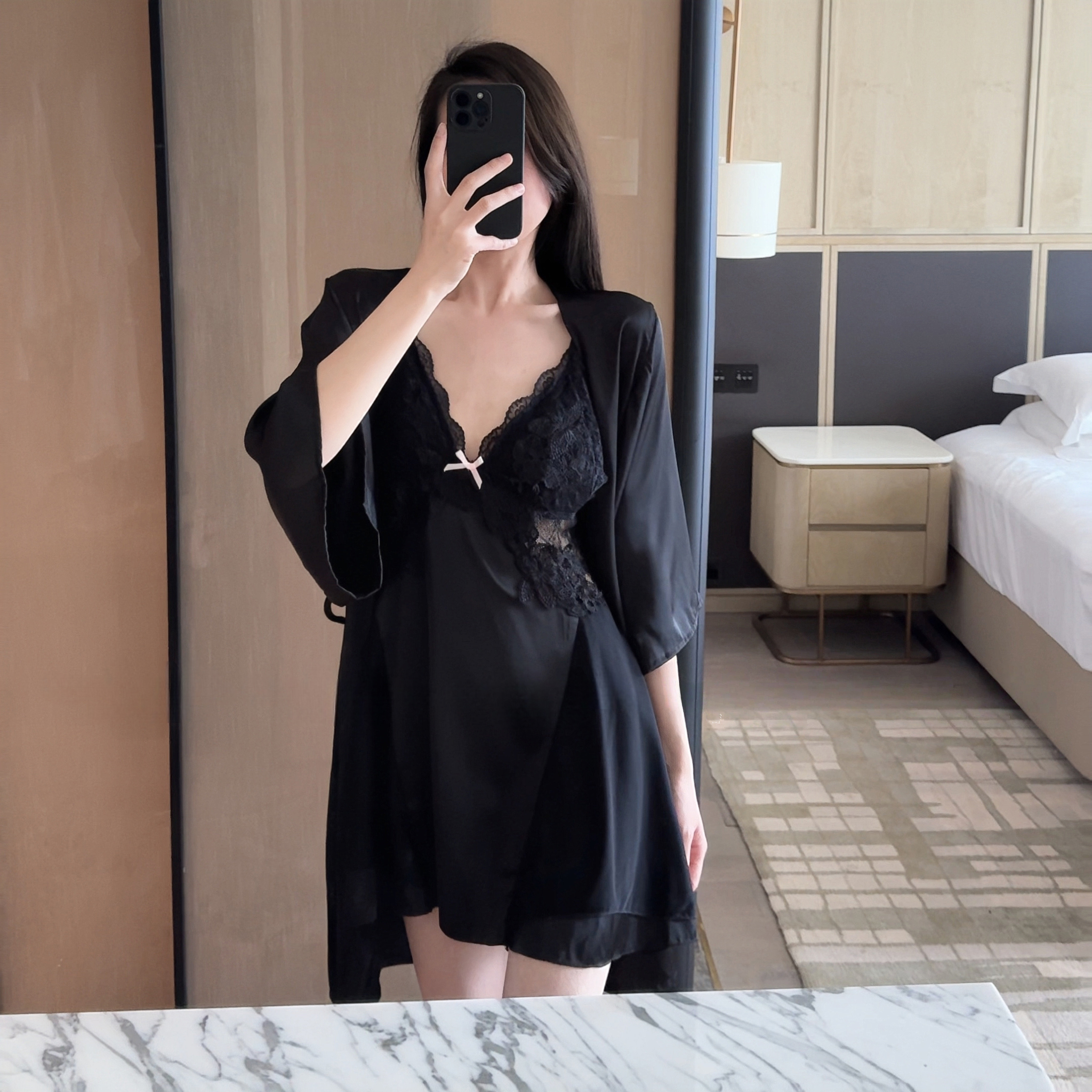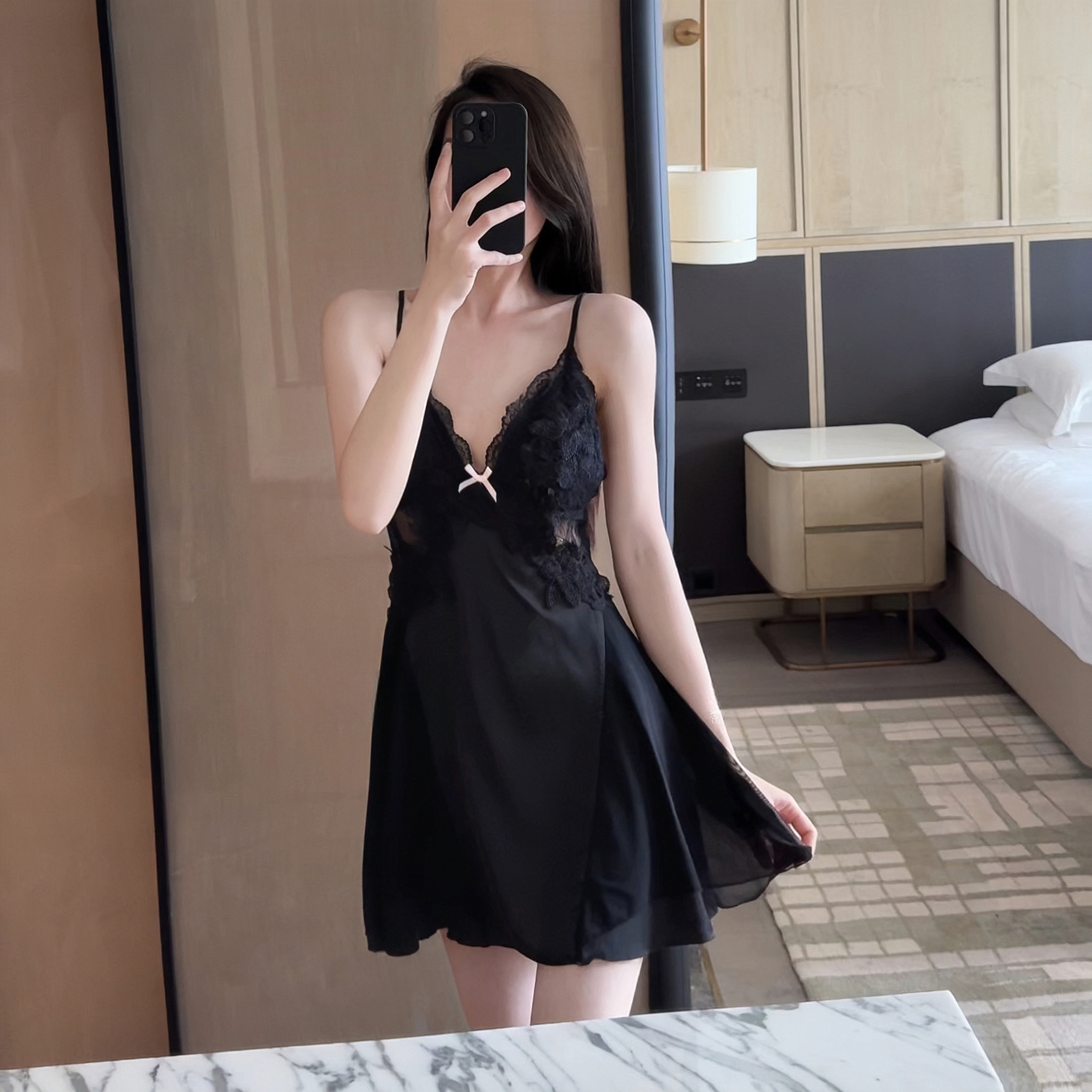 大码性感睡衣纯欲冰丝蕾丝吊带