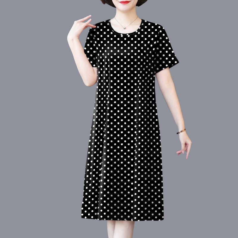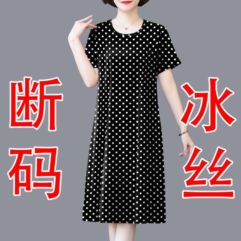 中老年妈妈装2023新款大码宽松遮肚子冰丝连衣裙夏时尚洋气中长裙