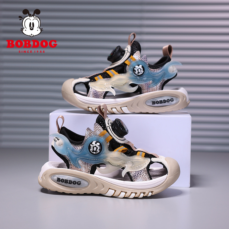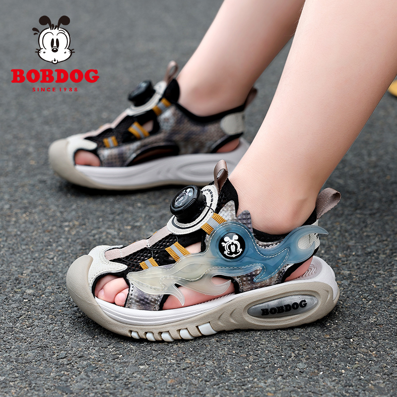 巴布豆男童包头凉鞋2025夏季新款镂空透气中大童小学生软底沙滩鞋