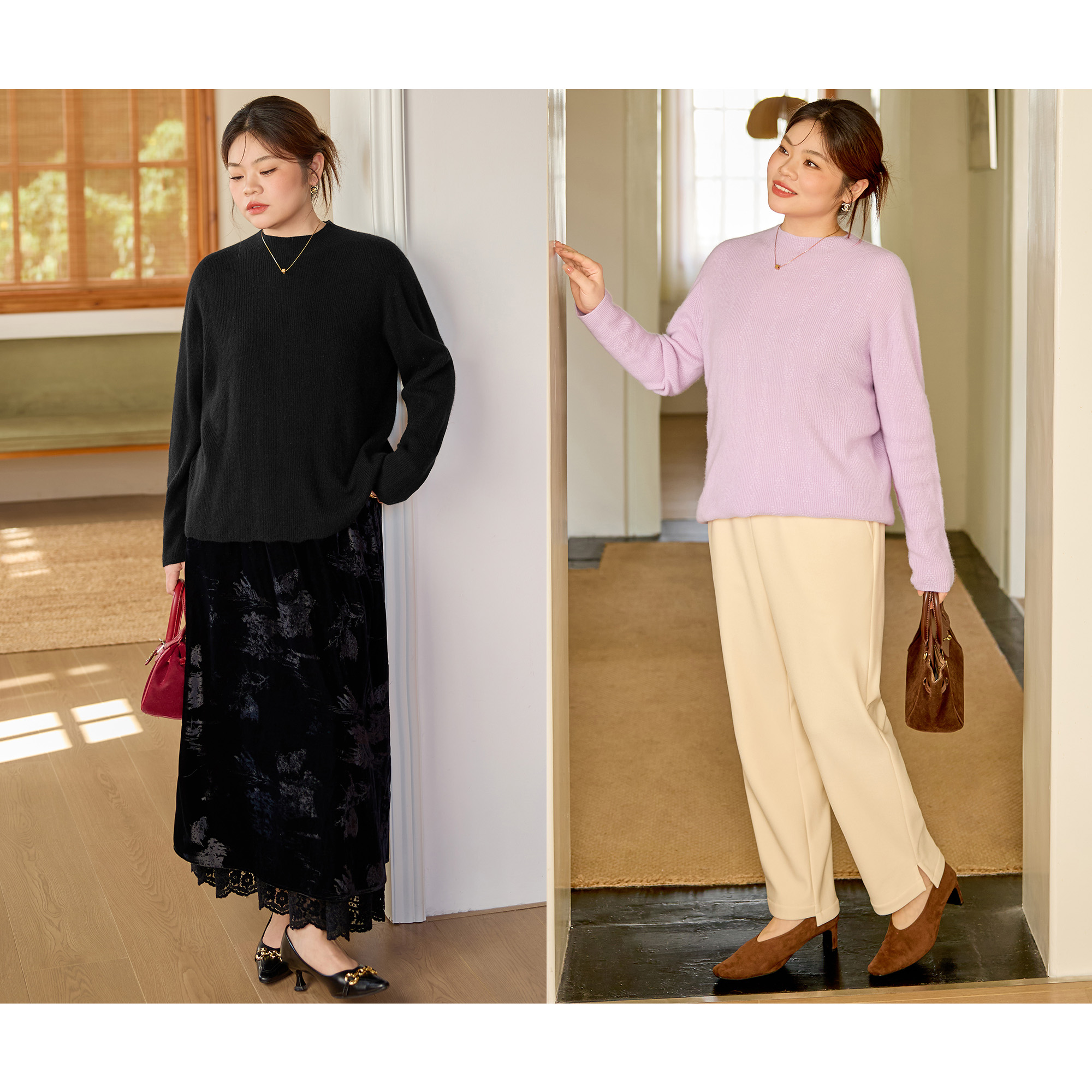 【羊毛羊绒混纺】美丽客栈毛衣女2025冬新款黑色半高领内搭羊绒衫