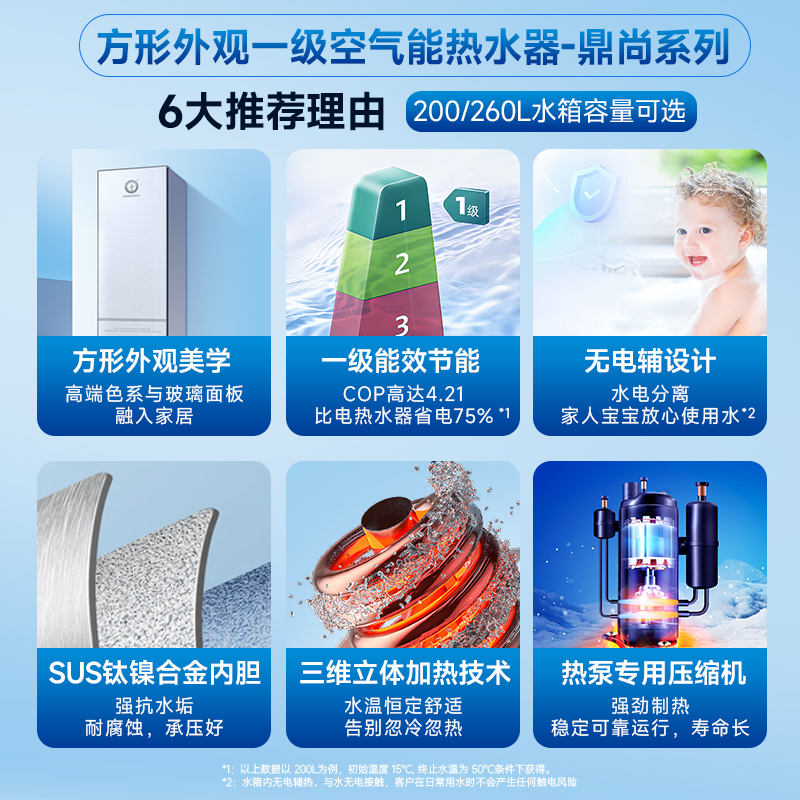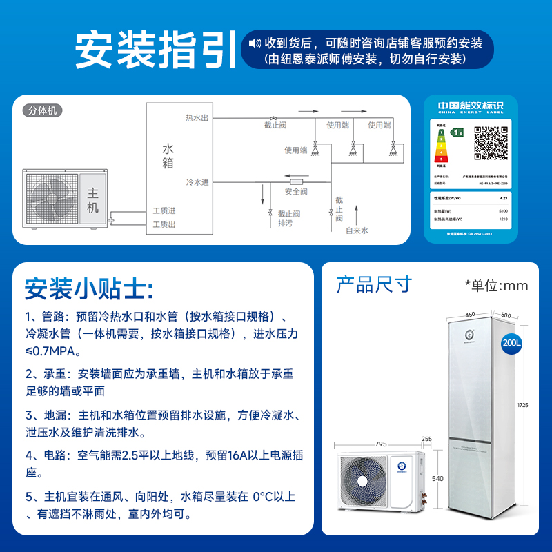 纽恩泰空气能热水器家用大容量200L一级能效空气源热泵热水器鼎尚