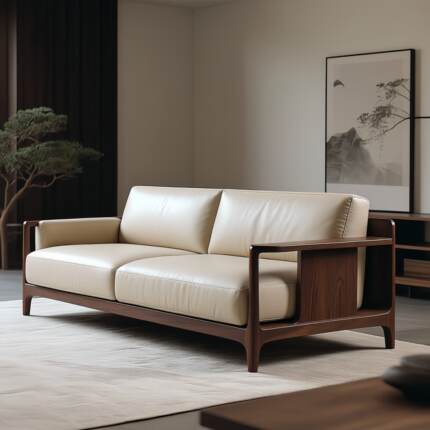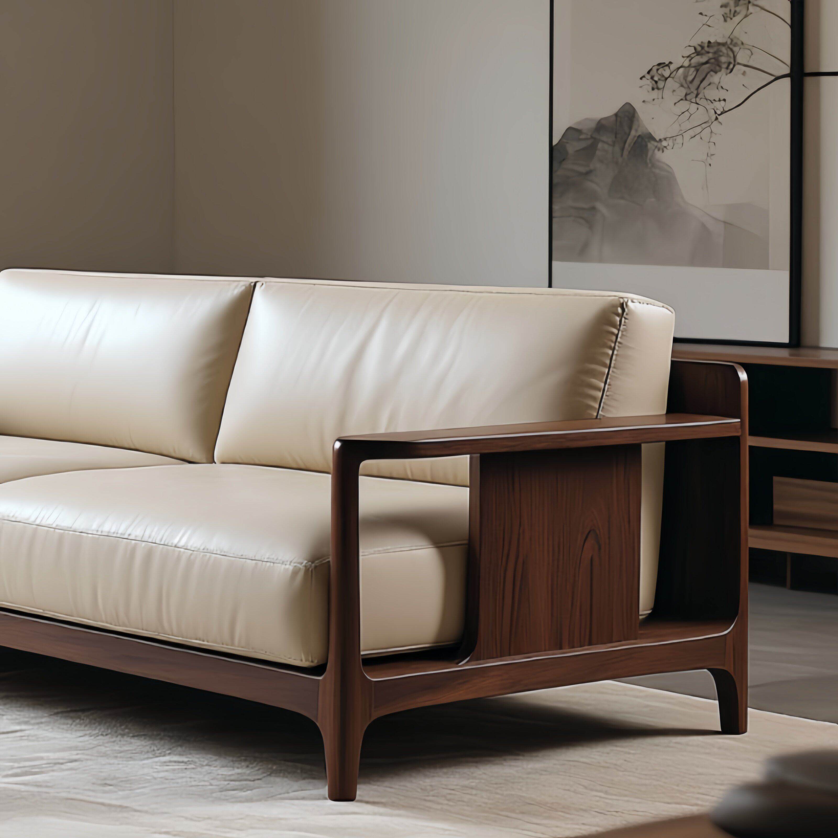 轻奢胡桃木实木沙发2025新款高端家用客厅别墅皮艺直排沙发
