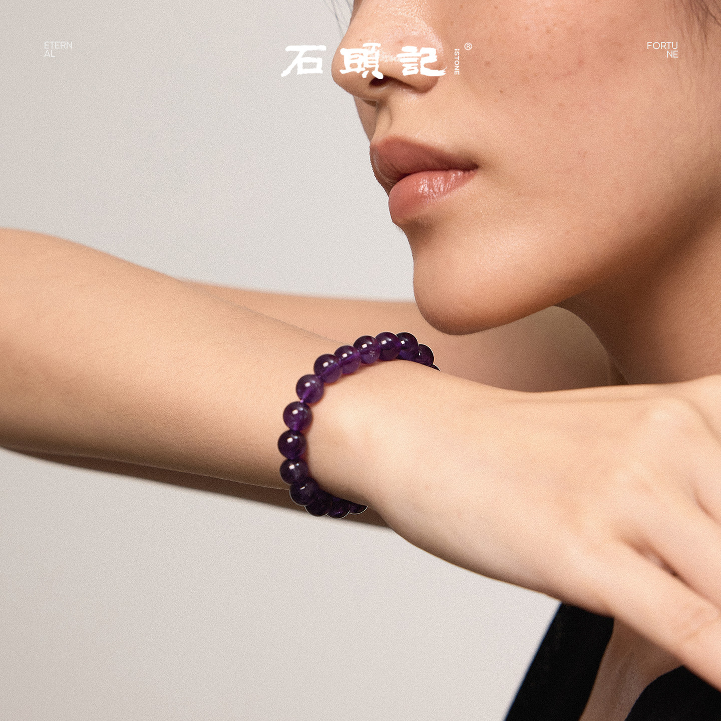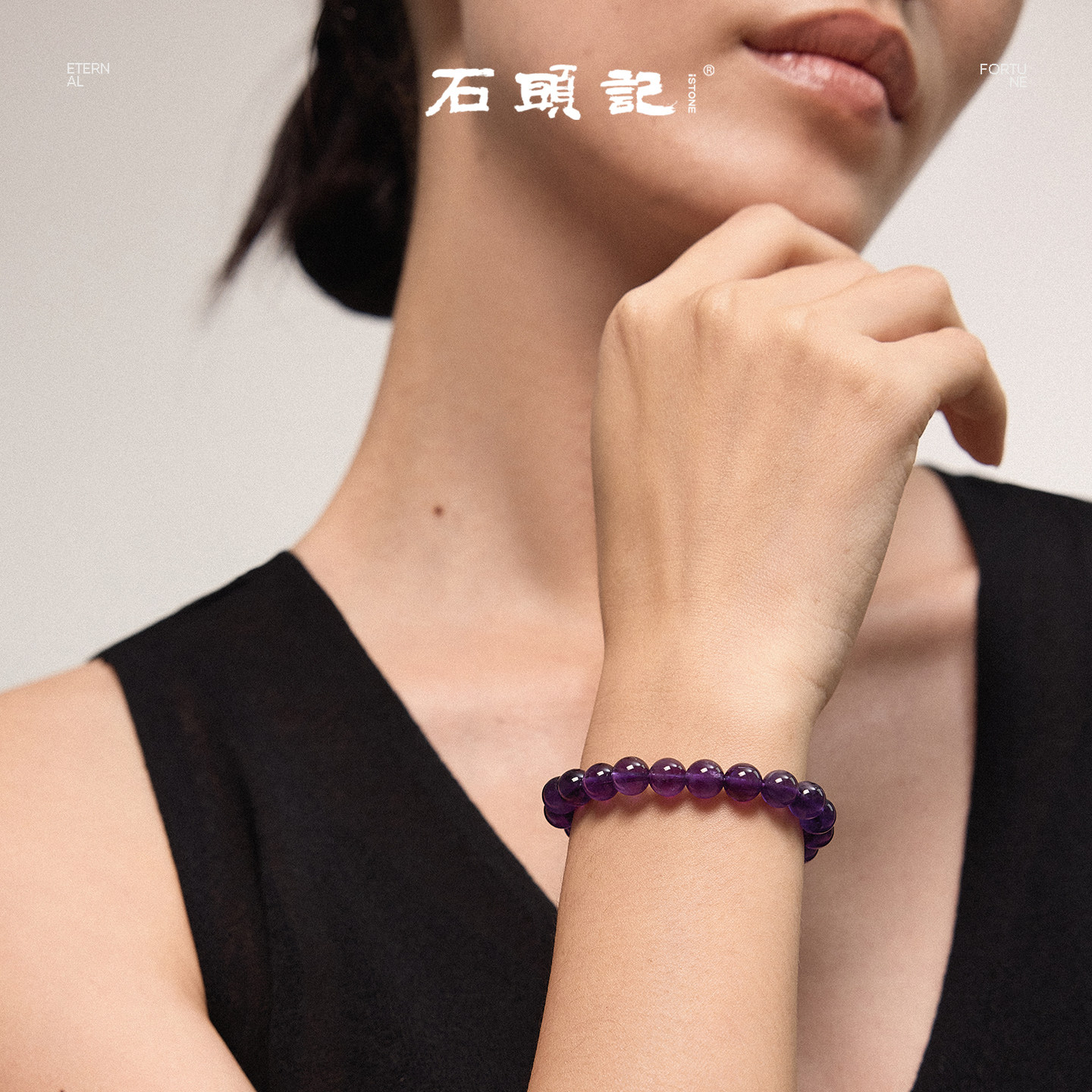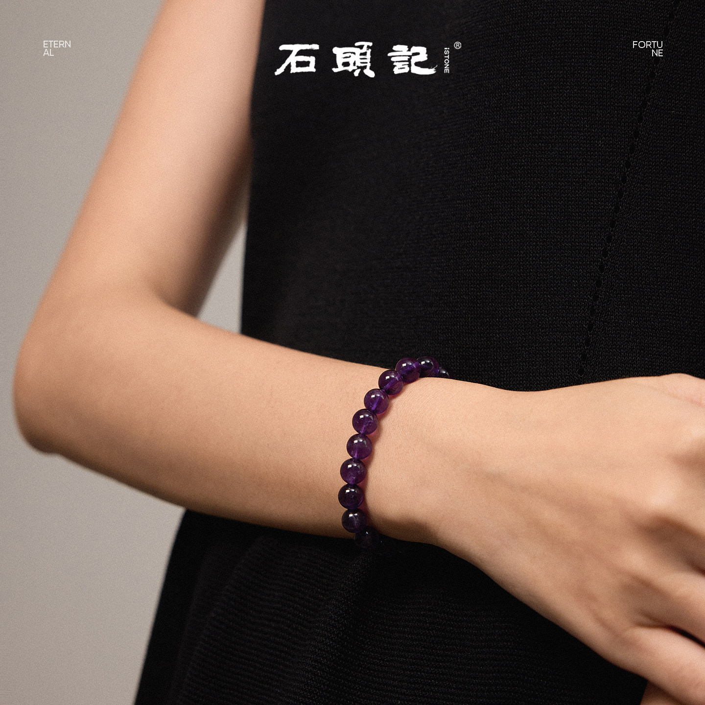 iSTONE/石头记天然紫水晶手链女款单圈手串轻奢时尚饰品节日礼物