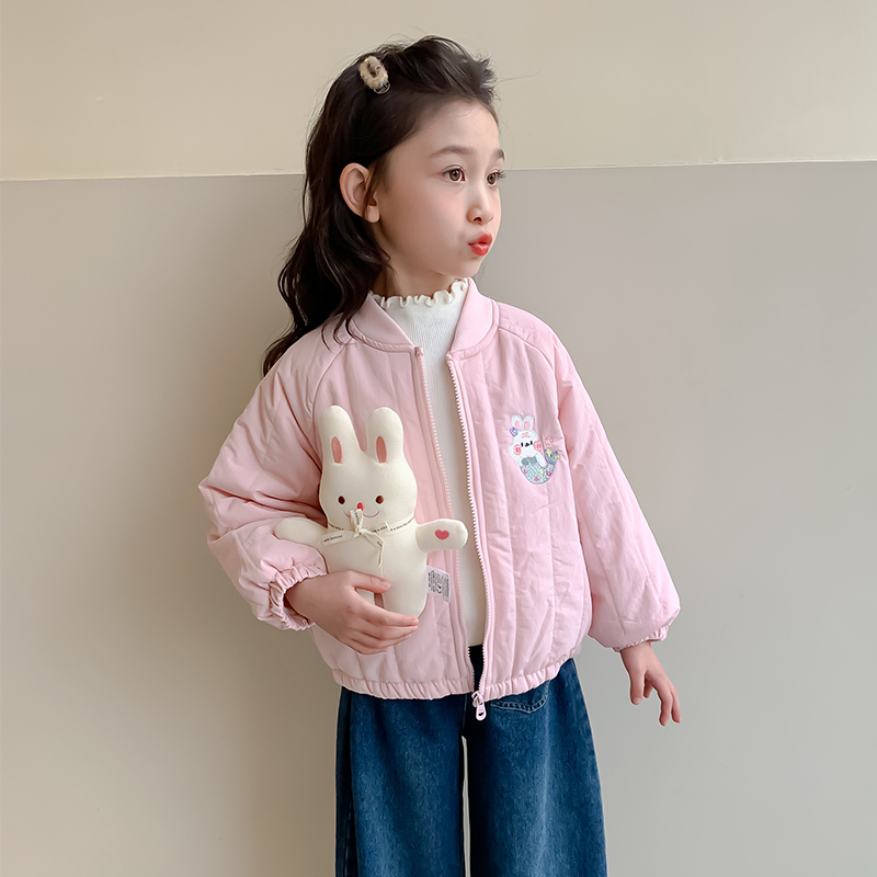女童外套2025新款秋冬星星兔子绗棉女宝宝休闲外出加绒保暖上衣潮