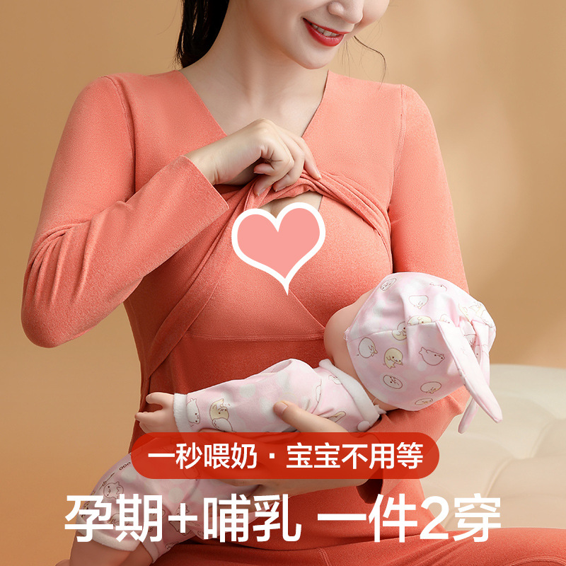 孕妇保暖内衣上衣秋衣秋裤套装加绒打底衣孕期产后哺乳睡衣女