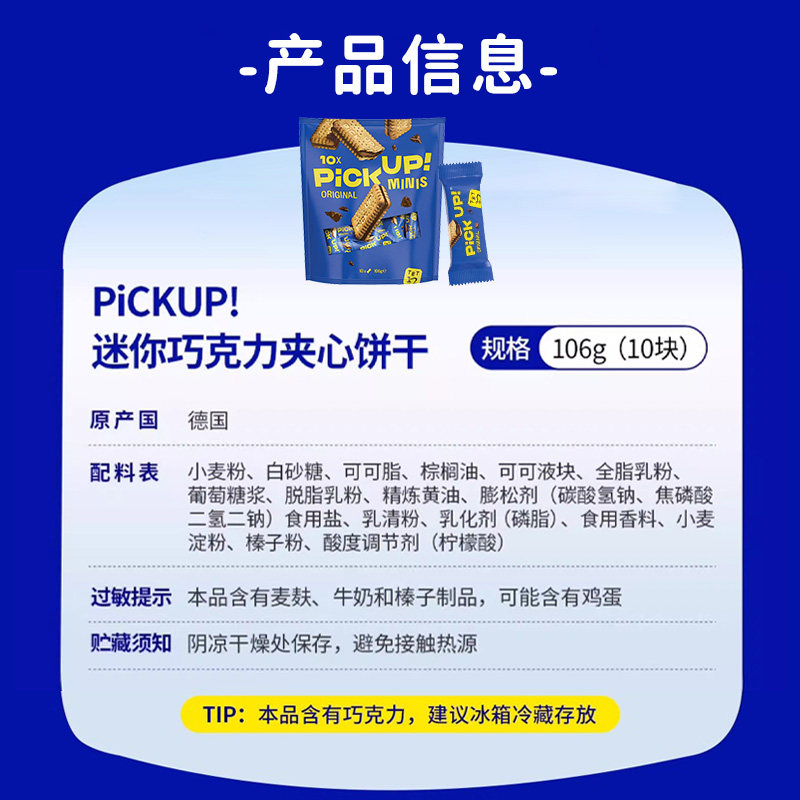 德国百乐顺进口饼干PICKUP迷你巧克力夹心早餐下午茶零食